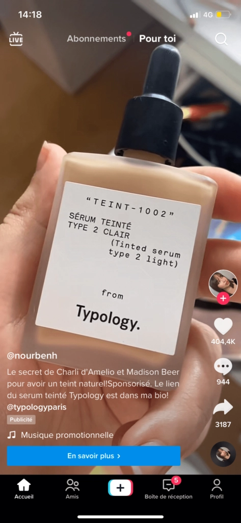 La marque Typology a misé sur l’authenticité que procure le whitelisting. La marque a ainsi fait appel à la créatrice de contenu @Nourbenh pour promouvoir un sérum teinté. Une collaboration qui fut un réel succès. Avec plus de 3 000 partages, 900 commentaires et 400 000 j’aime, la marque a su utiliser le whitelisting pour engager la communauté de l’influenceuse. Et toucher une nouvelle communauté grâce à la publicité sociale. Fort de son succès, le produit est désormais catégorisé comme « Best Seller » sur le site e-commerce de la marque Typology.